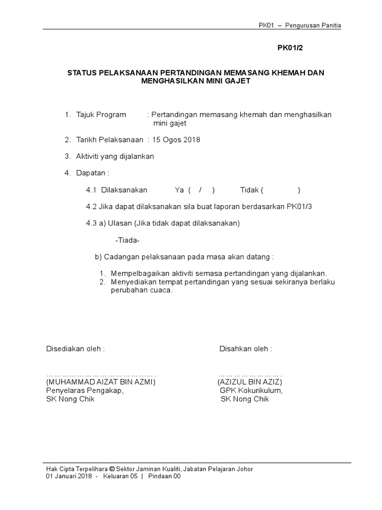 Contoh Format Laporan Pertandingan Dalaman Peringkat Sekolah Pdf